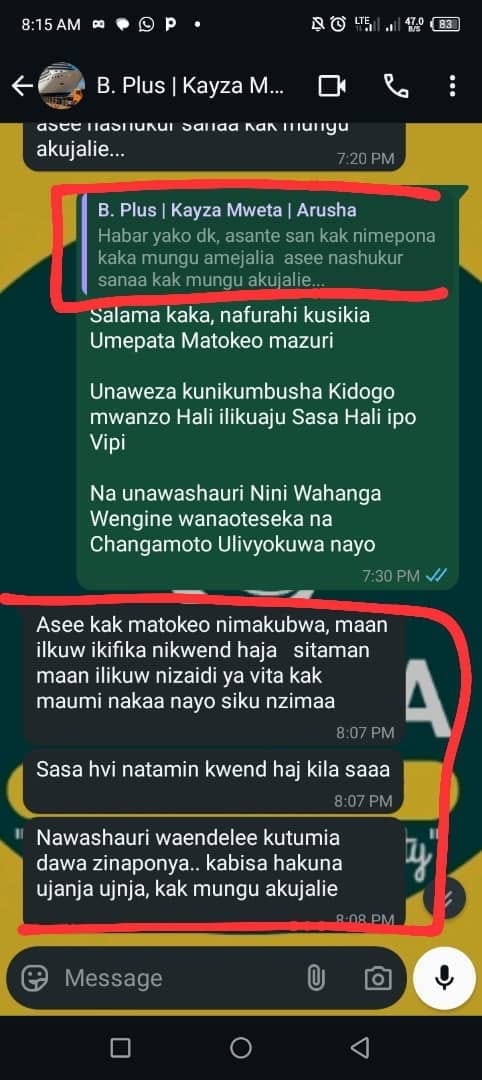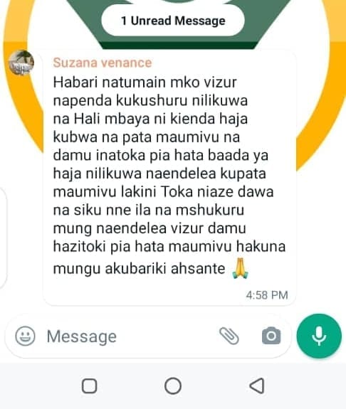 Hali hiyo mara ya mwisho kunitesa ni January aise nlipo pata muongozo wa chakula hai na dawa inenisaidia mno